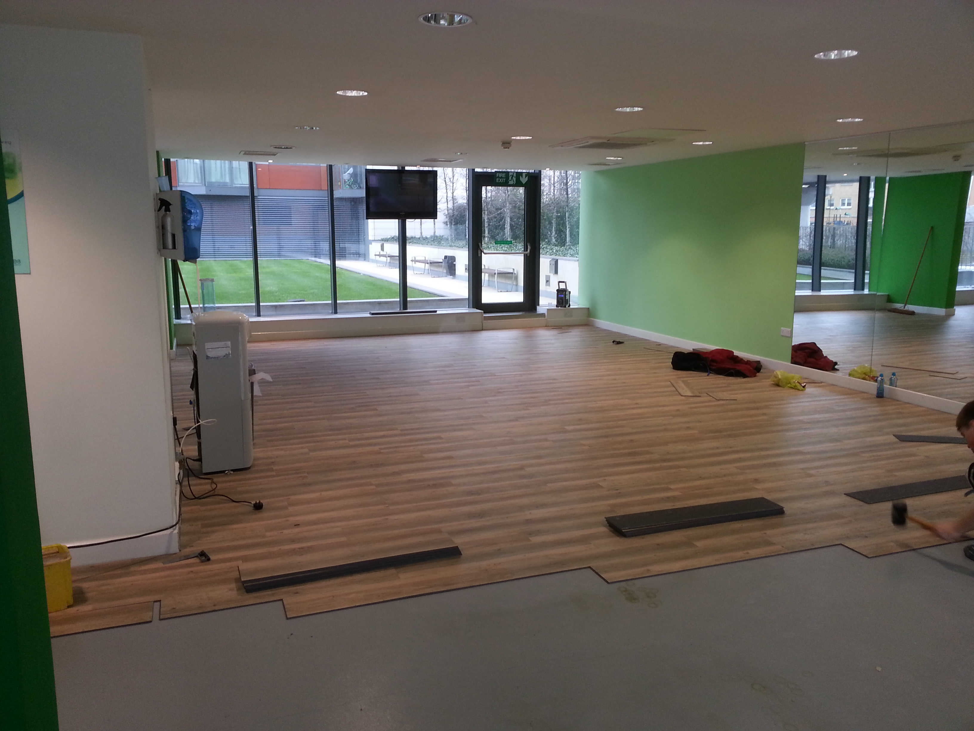 Elektron Towers- This was a full floor replacement, including uplift & disposal, full floor preparation, and replacement using Geflor Creation Click, which allows for easy removal & replacement of planks, should any damage occur.